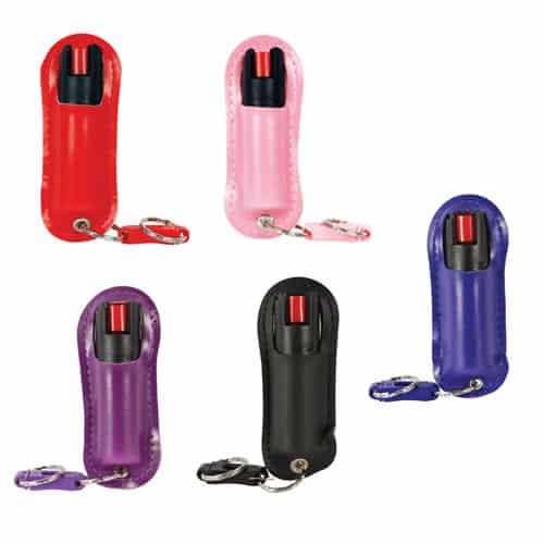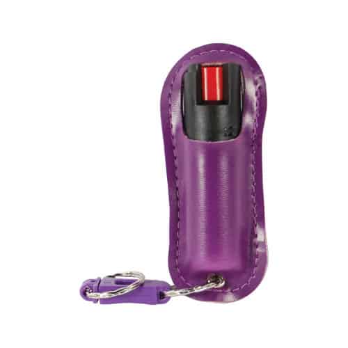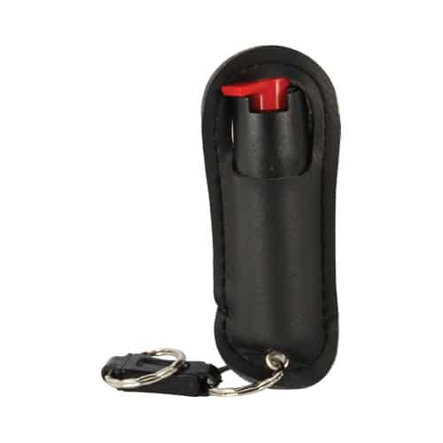Pepper Shot 1.2% MC 1/2 oz Halo Holster and quick release keychain black. Pepper Shot Pepper Spray is made with 1.2% Major Capsaicinoids. The Major Capsaicinoids are the true heat measure and Pepper Shot 1.2% MC is more effective than of most other pepper sprays. In addition to causing an attacker pain, The Pepper Shot 8.5% oleoresin capsicum formula swells the mucous membranes, which makes breathing difficult, and swells the veins in the eyes, causing the eyes to close. It’s made from 2,000,000 SHU’s of raw pepper and these effects can last up to 45 minutes and cause no permanent damage. Has a UV identifying dye to help aid in the identification of an attacker. This model has a locking actuator. 1/2 ounce with halo holster, locking actuator and quick key release keychain. Measures: 4 ¼” x 1 ⅝”