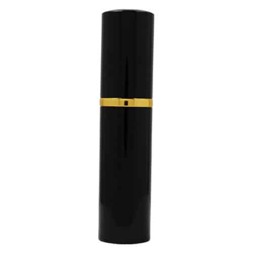 Pepper Shot 1.2% MC ½ oz lipstick pepper spray black. It’s designed for women. Pepper Shot Pepper Spray is made with 1.2% Major Capsaicinoids. The Major Capsaicinoids are the true heat measure and Pepper Shot 1.2% MC is more effective than of most other pepper sprays. In addition to causing an attacker pain, The Pepper Shot 8.5% oleoresin capsicum formula swells the mucous membranes, which makes breathing difficult, and swells the veins in the eyes, causing the eyes to close. It’s made from 2,000,000 SHU’s of raw pepper and these effects can last up to 45 minutes and cause no permanent damage. Has a UV identifying dye to help aid in the identification of an attacker. This lipstick model is designed for women. The attractive lipstick case is sure to deceive and ward off potential attackers. Pretend you need to freshen your lipstick and POW! This ½ oz canister contains 6-10 one-second sprays with a range of 6-8 feet and is available in 4 colors – Black, Pink, Red, and Silver – 4″ x ½”