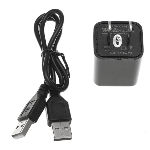 USB Charger Hidden Spy Camera with Built in DVR. In this age of electronics, everyone has a variety of adapters and chargers plugged into nearly every electrical outlet. No one will even pay attention to the USB charger hidden camera with night vision. It records in crisp clear 1920x1080p resolution at 30fps on a 32GB micro SD card which will store up to 7 hours of footage. This covert USB adapter is great for office security or a nanny cam at home. It is very easy to use and will do Loop or Motion Activated recordings. Easily connects to your computer to download and view video footage.